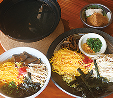 奄美の代表的な郷土料理「鶏飯」は具をのせたご飯に地鶏スープをかけていただきます。 |
