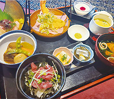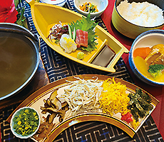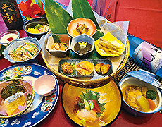 | 島外の方をお迎えするのに最適な「島めぐり御膳」。前日迄に要予約。 |
